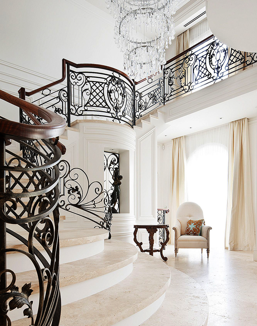 Pilihan reka bentuk pagar tangga besi tempa di rumah persendirian