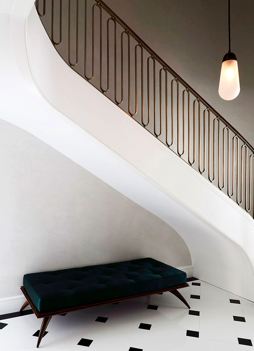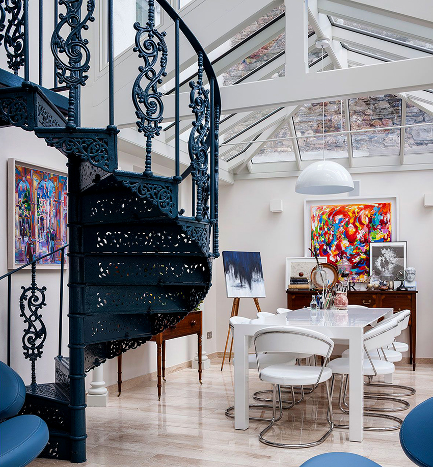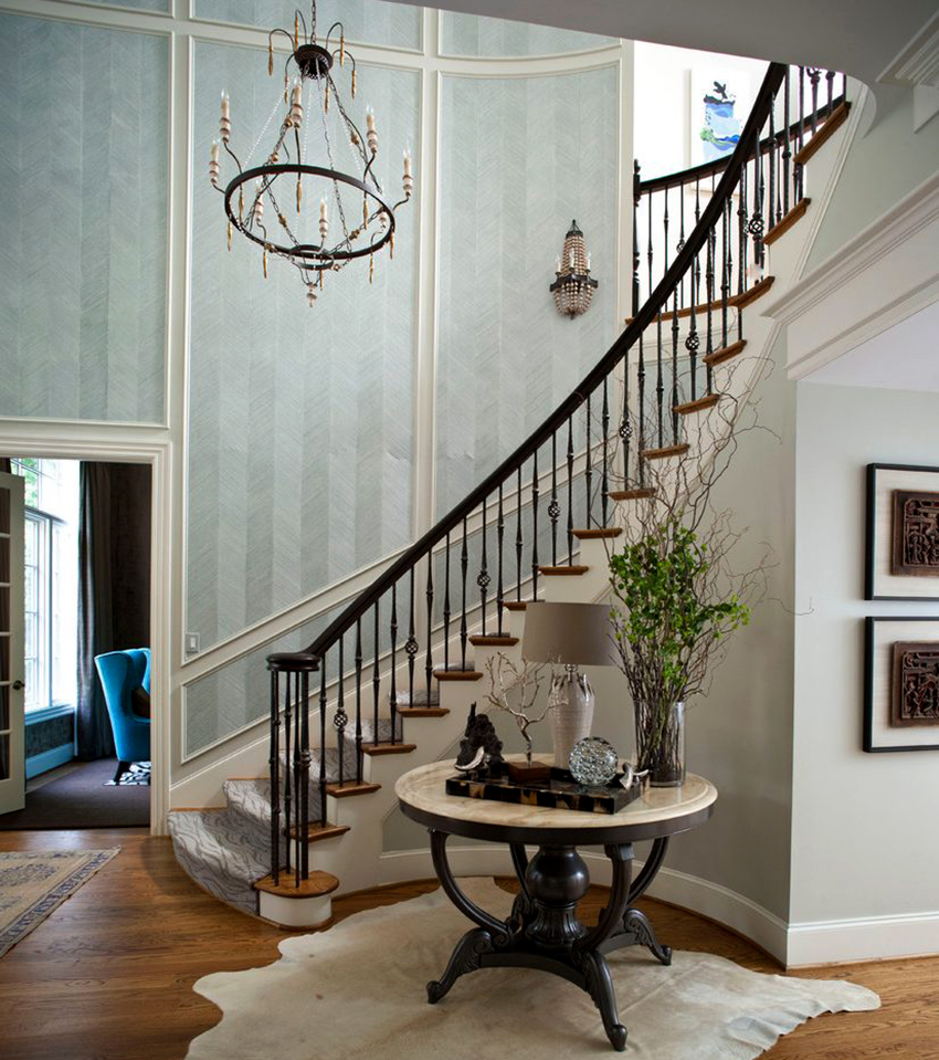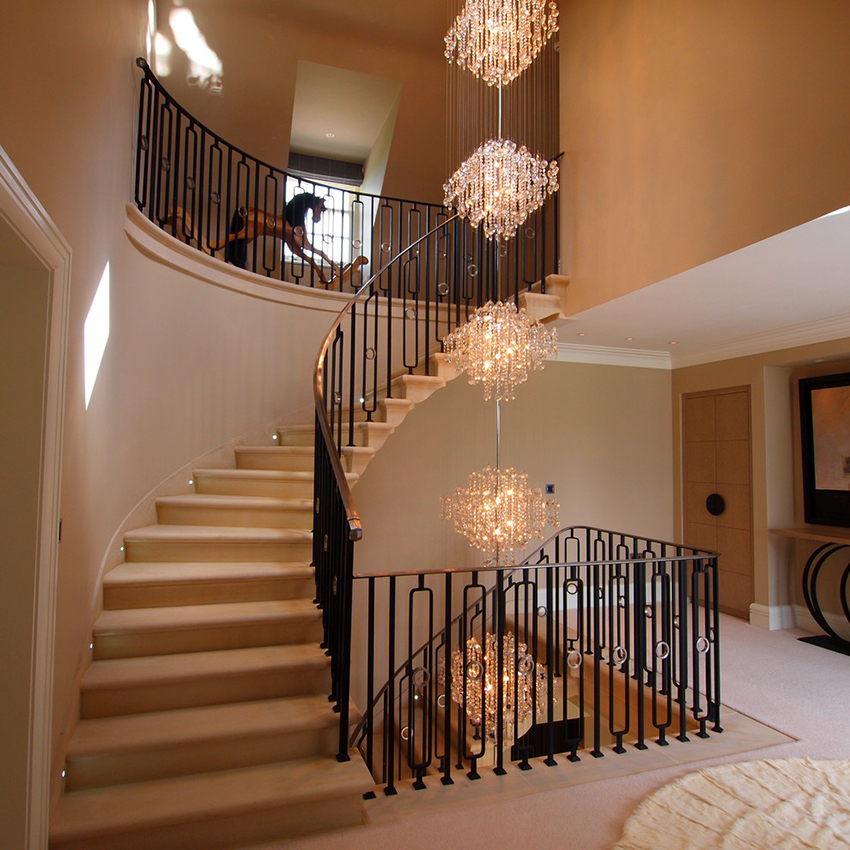 Struktur logam digunakan bukan sahaja dalam gaya klasik - ia boleh dipasang di bilik moden. Oleh itu, pagar seperti itu adalah penyelesaian terbaik untuk menghias bahagian dalaman apa pun, tanpa mengira ciri-cirinya.