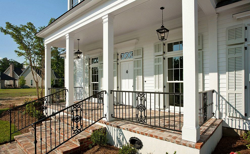 Nota! Bangunan kediaman yang dibuat dalam gaya klasik boleh dilengkapi dengan beranda, beranda atau teres. Pagar untuk reka bentuk sedemikian juga harus dipilih dalam reka bentuk gaya yang serupa.