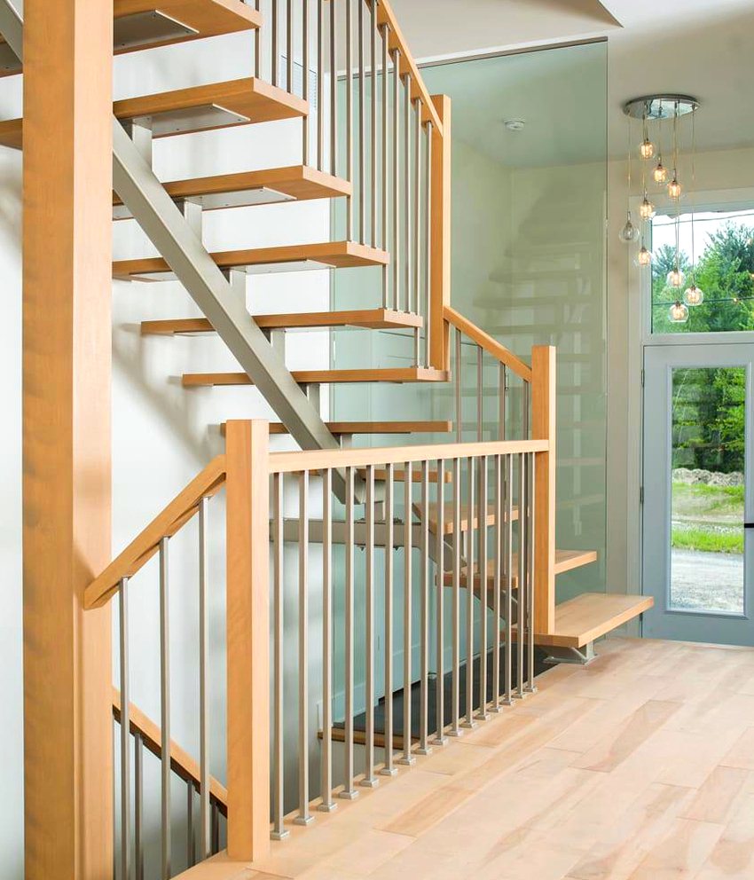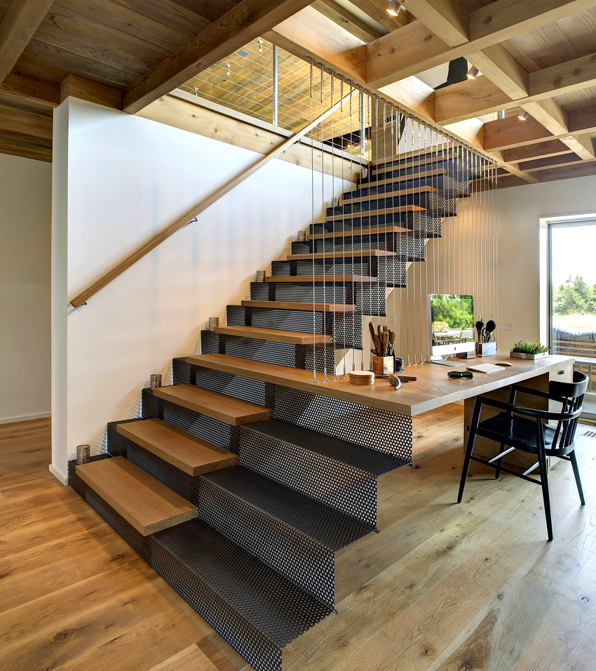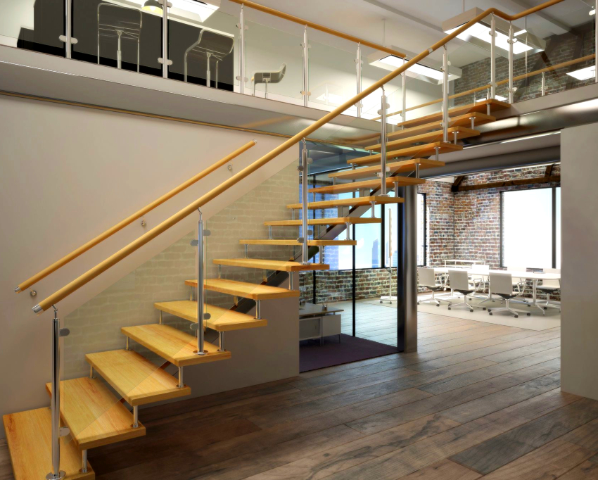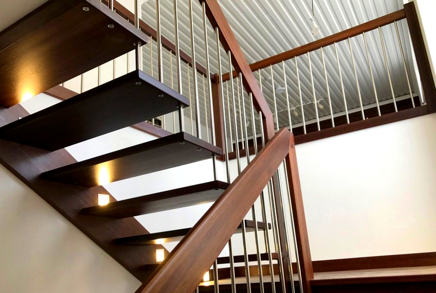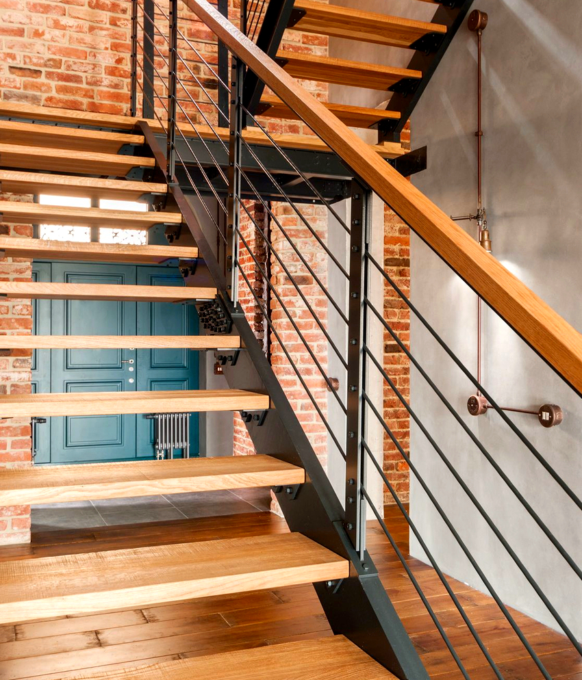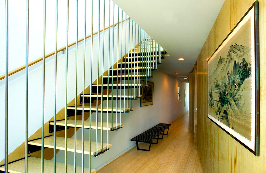 Tangga udara dapat dibezakan menjadi kumpulan yang terpisah, yaitu tangga yang dipasang dengan satu tepi ke dinding. Pilihan ini kelihatan laconic dan akan menjadi pelengkap yang sangat baik untuk dalaman berteknologi tinggi atau arah moden yang lain. Mengenai masalah reka bentuk, ketika memilih reka bentuk, seseorang harus bergantung pada cadangan asas berikut: