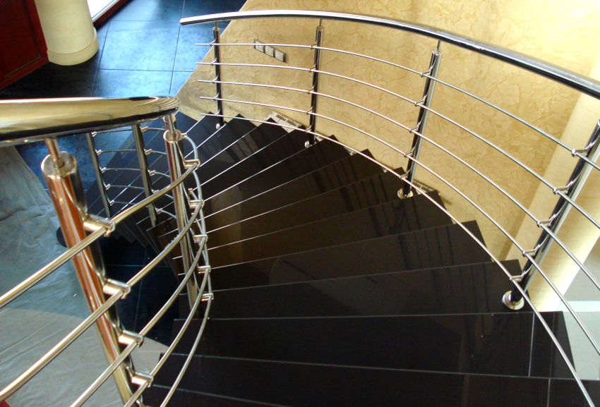 - Kos. Rel tangga keluli tahan karat akan berharga lebih murah daripada produk kaca atau palsu, tetapi lebih mahal daripada yang kayu.