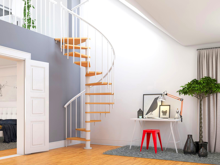 Nasihat pakar! Sudut mengangkat tangga dan pegangan tangan secara langsung bergantung pada kawasan yang diperuntukkan untuk pemasangan struktur. Sekiranya ruang sangat terhad, lebih baik memberi keutamaan kepada tangga spiral. Banyak liku-liku akan membantu melengkapkan lereng besar.