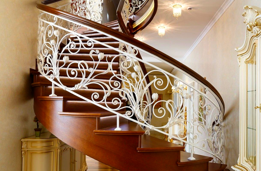 - Reka bentuk yang unik. Penempaan digunakan terutamanya untuk memenuhi pesanan individu. Oleh itu, adalah mungkin untuk menghiasi tangga dengan pagar eksklusif.