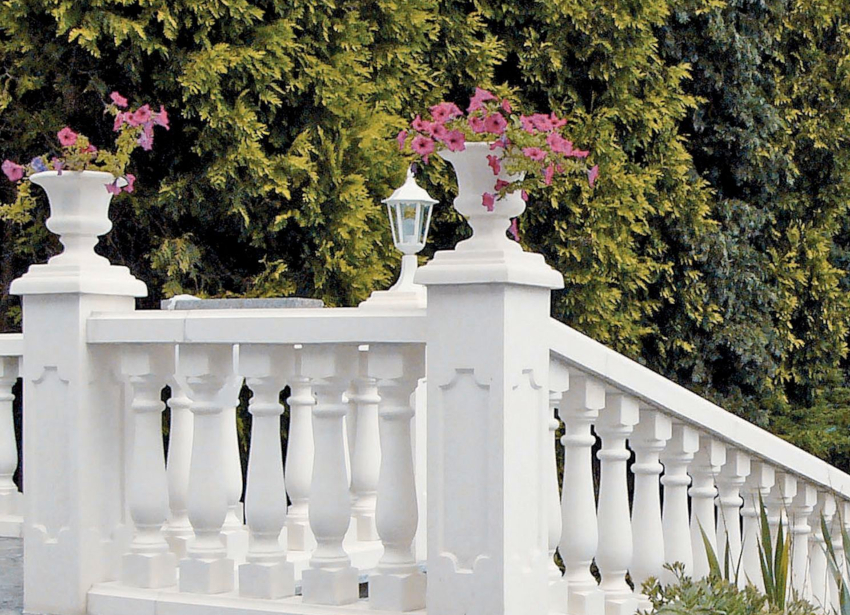 Beton dapat dengan mudah menahan pengaruh atmosfera negatif, ia kelihatan monumental dan dapat dilihat secara luaran. Dengan pertolongannya, dapat menonjolkan bahagian luar rumah dan menekankan status pemiliknya yang tinggi. Bergantung pada spesifik pengeluaran, terdapat jenis balusters batu ini: