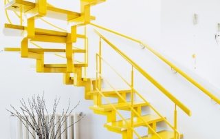 Tangga ke tingkat dua pada bingkai logam: keindahan, keanggunan, kemudahan pemasangan