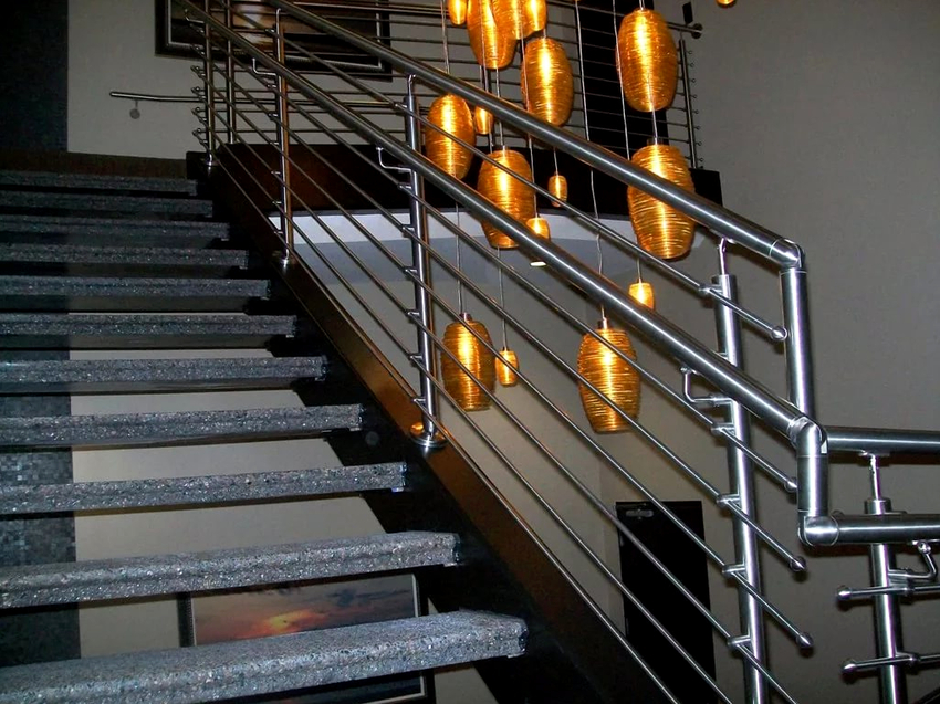 Untuk harganya, pegangan tangga keluli tahan karat lebih mahal daripada logam besi, tetapi ia bagus untuk kegunaan luaran dan dalaman. Peningkatan daya tahan terhadap luluhawa adalah sebab mengapa pagar keluli tahan karat paling sering digunakan untuk beranda. Pagar logam mengekalkan penampilannya untuk masa yang lama, dan juga berbeza dalam kualiti hiasan, jadi pilihan ini sering dapat dilihat di luar dan di dalam rumah.