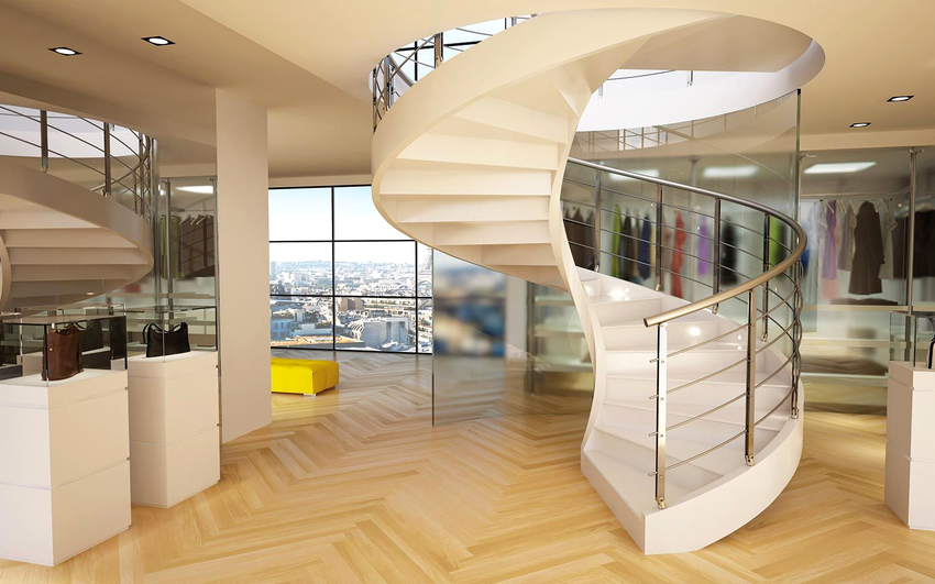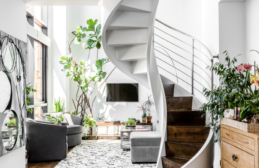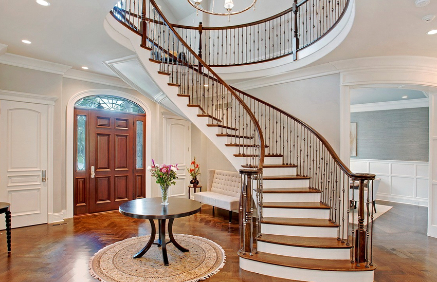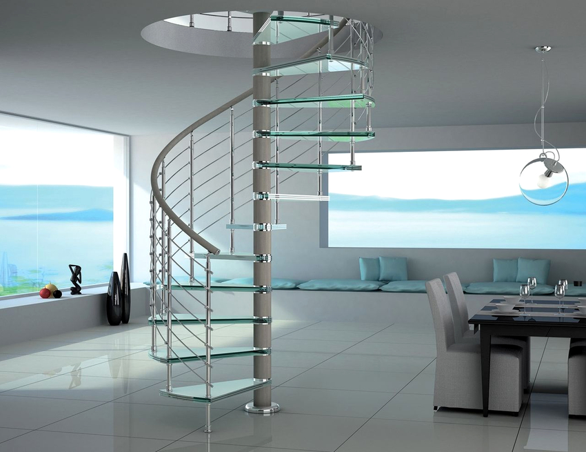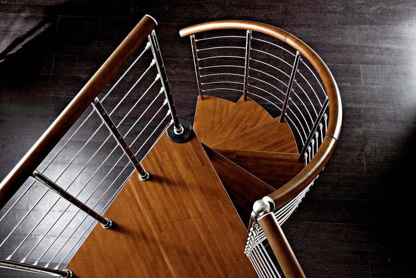 Skru. Nama lain adalah tangga spiral, yang kelihatan tidak hanya cantik, tetapi juga estetik. Pusing terbentuk kerana struktur melengkung yang lancar. Tangga spiral dianggap selamat dan selesa. Mereka tidak hanya akan menghiasi bilik, tetapi juga menjadi elemen yang membolehkan anda mengatur pergerakan dengan cekap.
