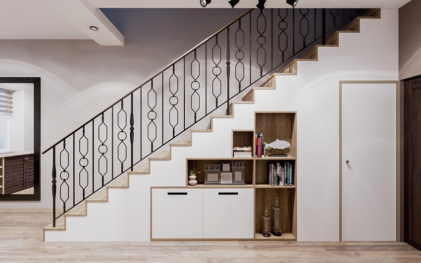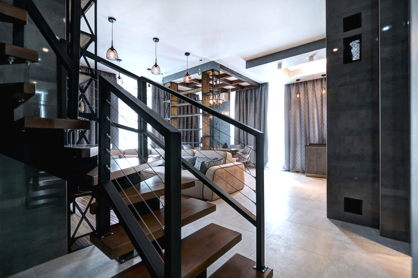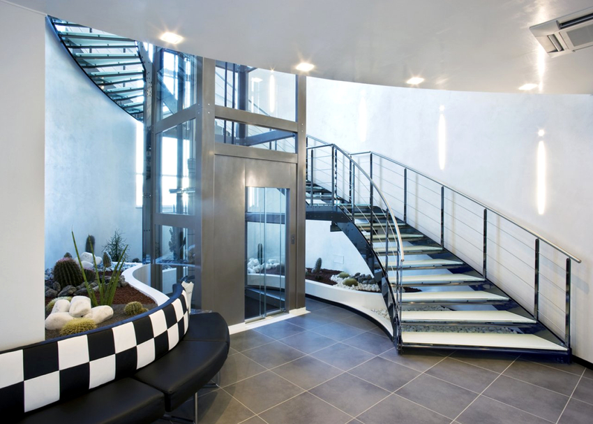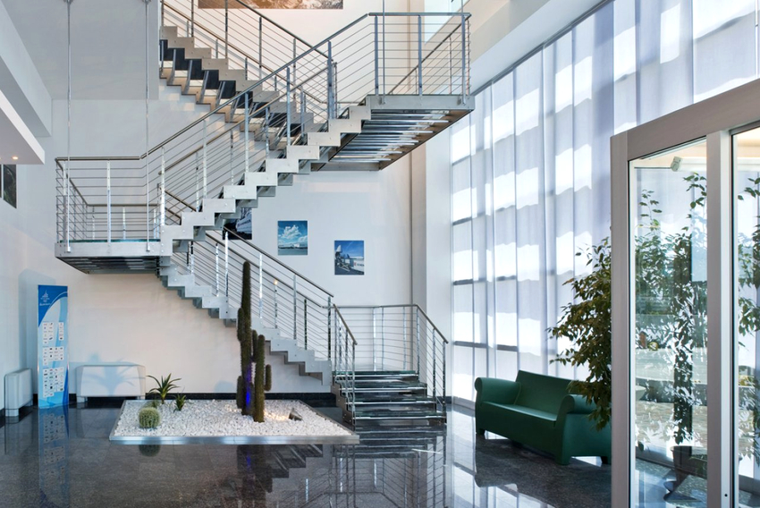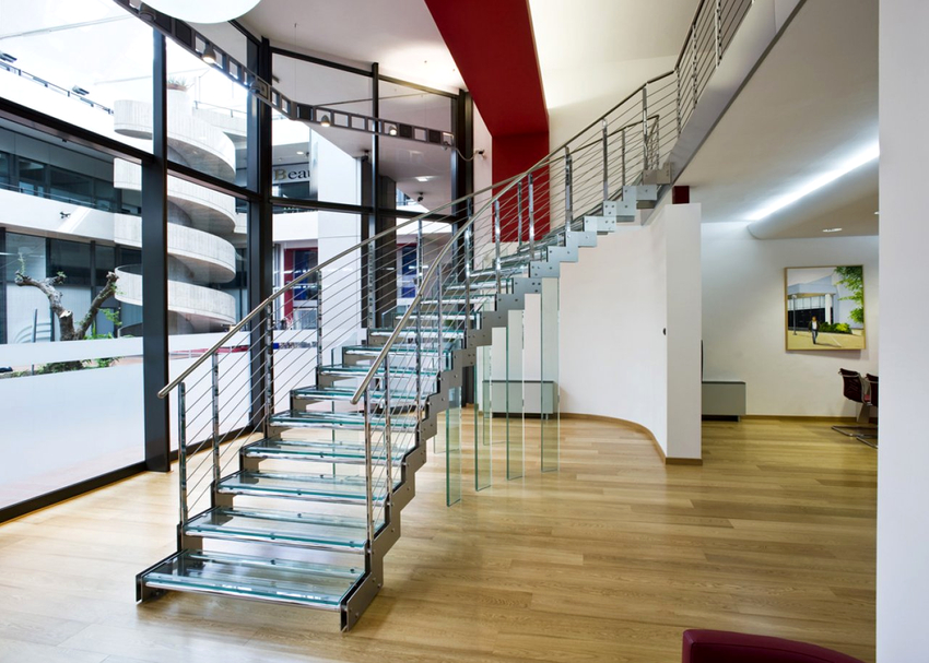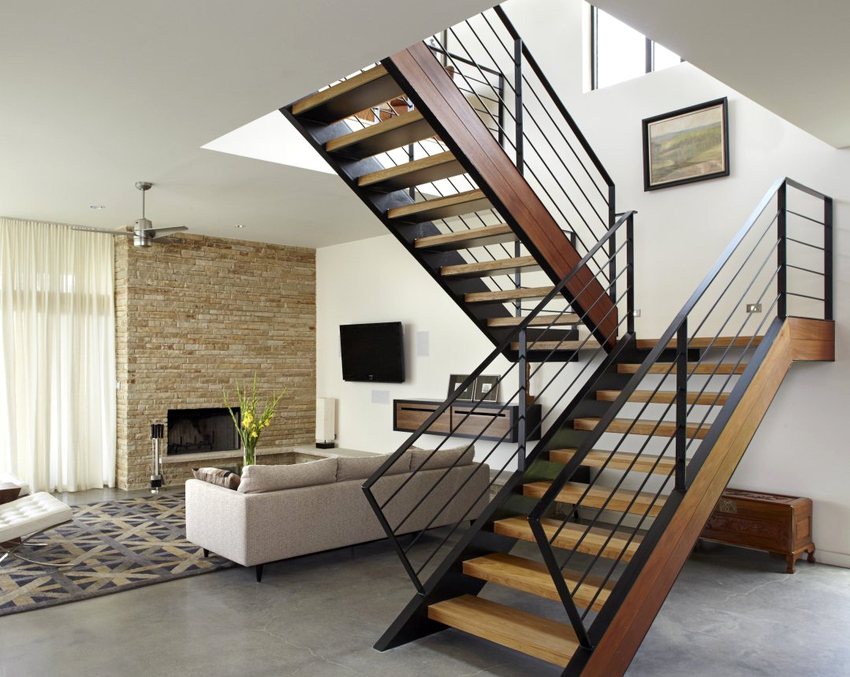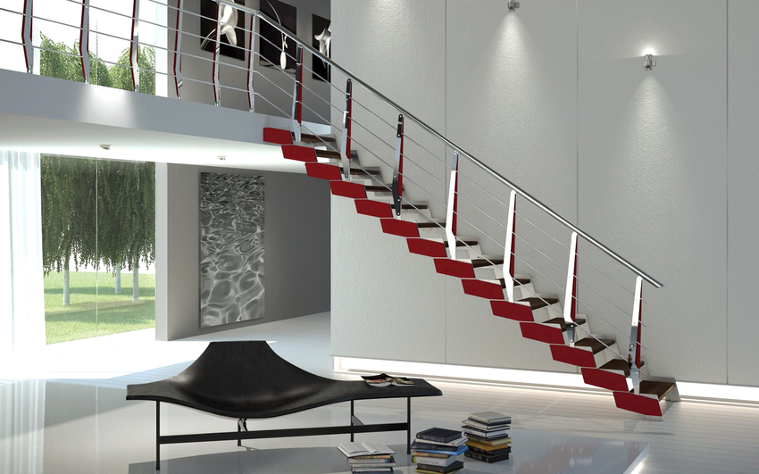 - versi terbuka dari pagar logam akan menambahkan ringan ke tangga dan mengubah struktur apa pun
