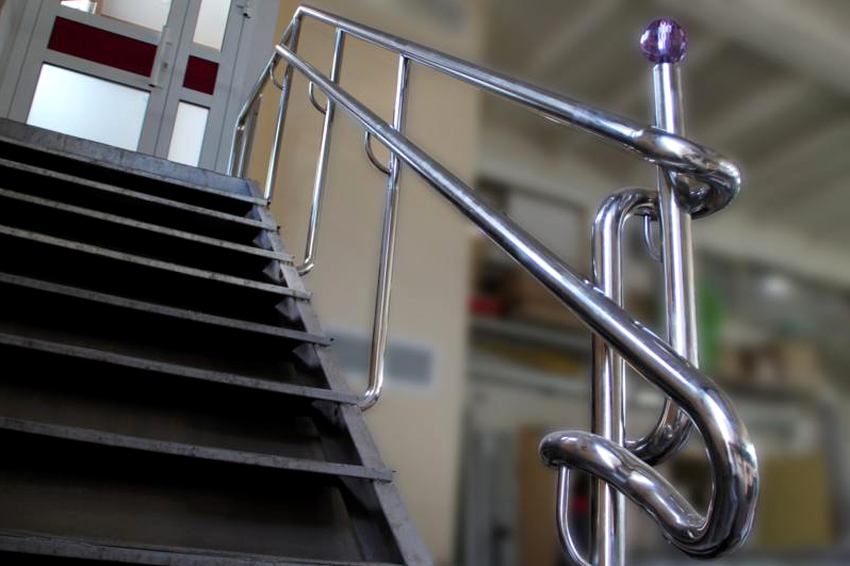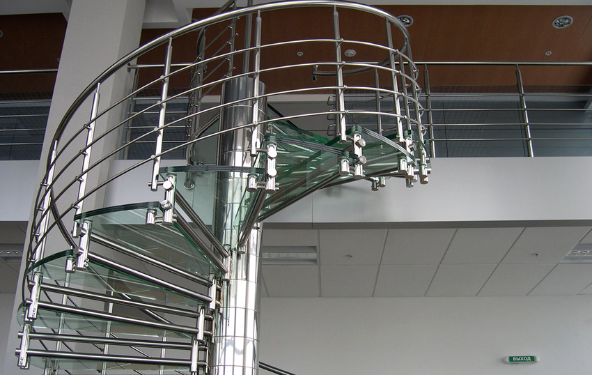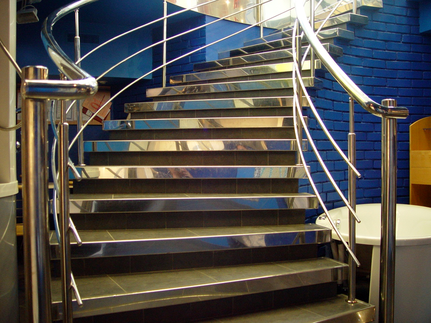 Tetapi produk keluli mempunyai kelemahan yang ketara. Oleh itu, pagar, yang terdiri daripada unsur-unsur figur kompleks, dipasang dari beberapa bahagian, yang saling melekat dengan mengimpal secara langsung semasa pemasangan tangga itu sendiri. Untuk mengelakkan penampilan dan penyebaran kakisan, sambungan yang tersisa akibat pengelasan digiling dan dicat.