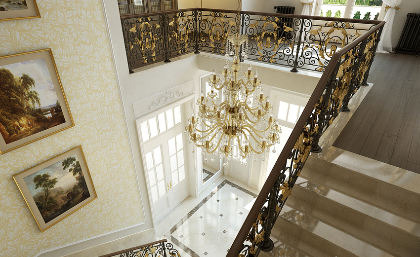 - Pagar tempa dan cor benar-benar sesuai dengan bahagian dalam klasik dengan unsur-unsur bangsawan;