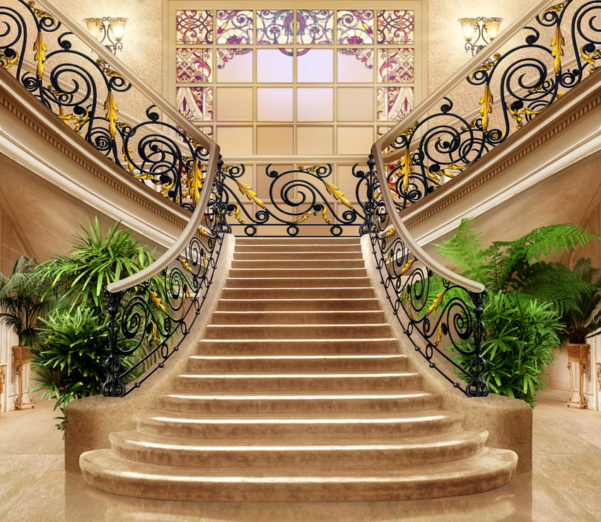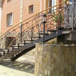 Pagar dapat digunakan untuk melengkapkan bangunan bertingkat, pejabat dan bangunan kediaman. Struktur besi tuang selaras dengan langkah-langkah yang diperbuat daripada pelbagai bahan, kelihatan sangat baik dalam kombinasi dengan ubin kayu dan marmar yang menghadap. Pada masa yang sama, pilihan siap boleh mempunyai penampilan yang sederhana atau berbeza dalam reka bentuk yang tidak biasa.