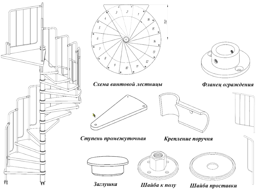 - jika tangga diperbuat daripada konkrit, untuk kebolehpercayaan, gadai janji logam mesti dipasang di pangkalan;