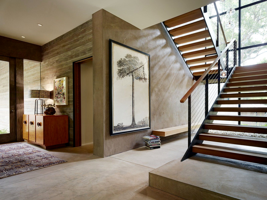 Apabila memilih pagar, anda perlu mengambil kira bukan sahaja kehendak individu, tetapi juga gabungan produk dengan pedalaman yang harmoni. Beberapa tangga kelihatan asli walaupun tanpa pagar, tetapi persoalan penggunaan selamat tetap terbuka. Oleh itu, lebih baik melengkapkan reka bentuk apa pun dengan pegangan tangan. Pilihan reka bentuk yang menarik: