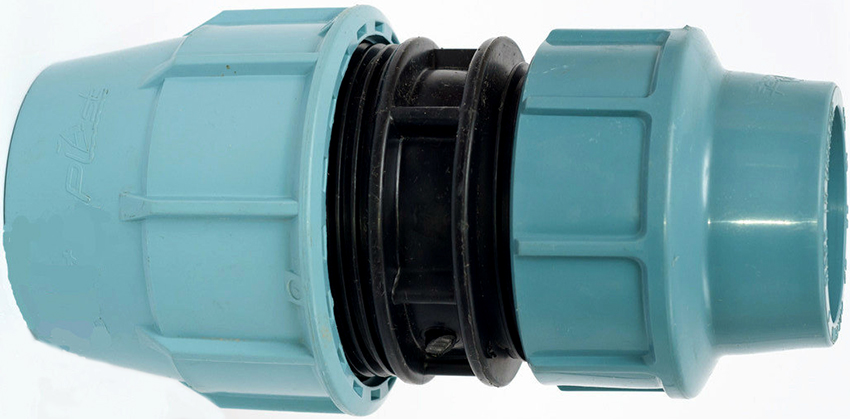 Sekiranya timbul persoalan bagaimana menyambungkan dua paip plastik dengan diameter yang sama, perlu dipertimbangkan pemasangan pemampatan, yang terdiri daripada penyatuan, cincin, kacang kesatuan dan gasket. Elemen pertama dimasukkan ke dalam rongga dalaman saluran paip. Ia terbuat dari tembaga tergalvani. Alur dibuat di permukaan produk, di mana tulang rusuk condong dan cincin kedap dimasukkan, yang menghalang sambungan dari pembukaan.