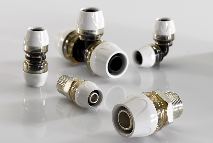 Dua pilihan terakhir adalah perkembangan kejuruteraan baru. Penyambungan elemen sistem dengan alat kelengkapan tolak dilakukan dalam masa beberapa saat. Jenis pemasangan plastik bertetulang ini terdiri daripada badan, kasut penahan dan cincin. Unsur pertama diperbuat daripada polifenilsulfon atau logam bukan ferus. Produk ini mempunyai bentuk sudut, salib, tee, dan juga digunakan sebagai gandingan.