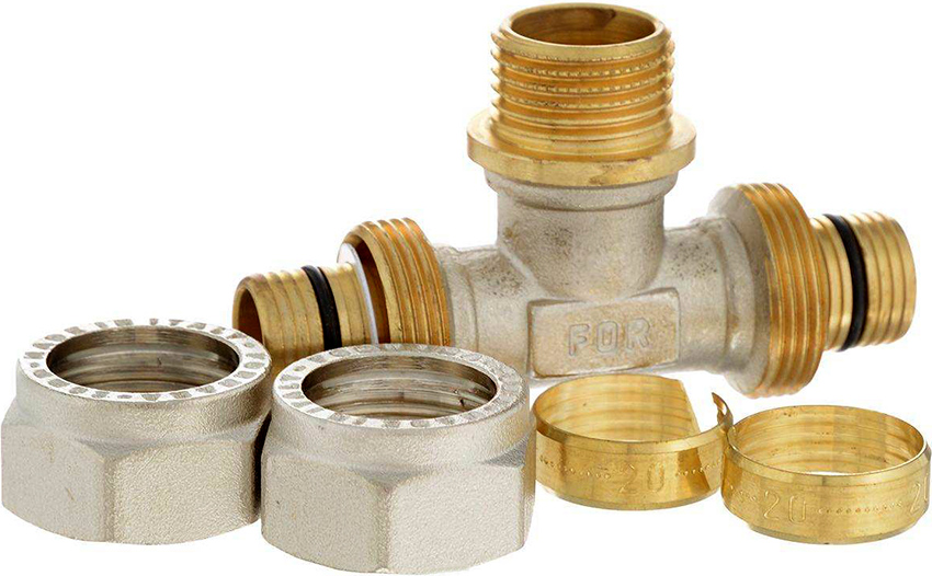 Kelengkapan tekan mampatan diwakili oleh unsur-unsur yang terdiri dari badan, lengan dan cincin. Badan diperbuat daripada tembaga atau tembaga, selalunya mempunyai lapisan galvanis. Bergantung pada tujuannya, elemen tersebut dapat berbeza dalam reka bentuk yang berbeda dan dapat disajikan dalam bentuk sudut, penyesuai paip, tee, salib atau soket air.
