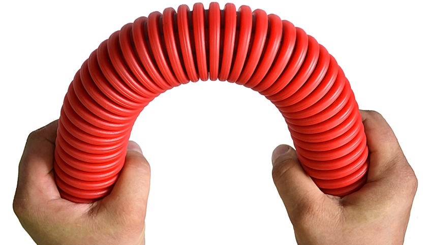 Corugation sangat fleksibel, tetapi pada masa yang sama mempunyai tulang rusuk yang kaku - perlindungan kabel dari kerosakan mekanikal
