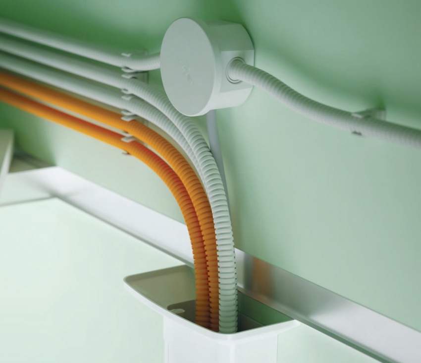 Paip beralun fleksibel dari keratan rentas kecil memungkinkan untuk melakukan pemasangan sendi dan putaran yang kompleks, sehingga putaran 360 °. Kabel, tertanam di alur tersembunyi, mengisinya secara merata, mengurangkan kos melepa permukaan selepas peringkat awal pemasangan.