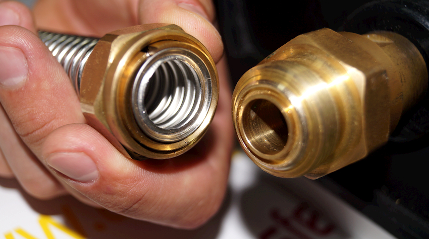 Pakar menasihatkan untuk menggunakan selang fleksibel dengan panjang minimum untuk menyambungkan peralatan gas