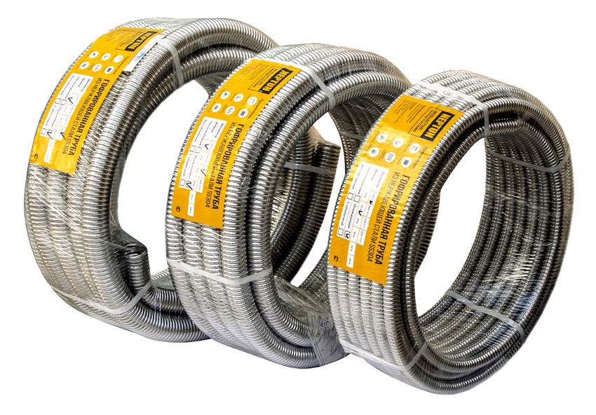 - paip beralun tahan karat dengan lapisan polietilena pelindung - direka untuk bekalan gas, untuk sistem yang terkonkrit, dan juga digunakan untuk meletakkan komunikasi di bawah tanah.