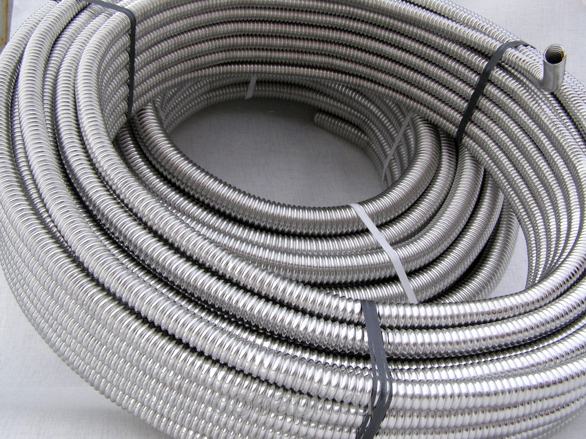 - Apabila perlu menyambungkan paip beralun tahan karat dengan bahan lain, disarankan untuk menggunakan kelengkapan tembaga.