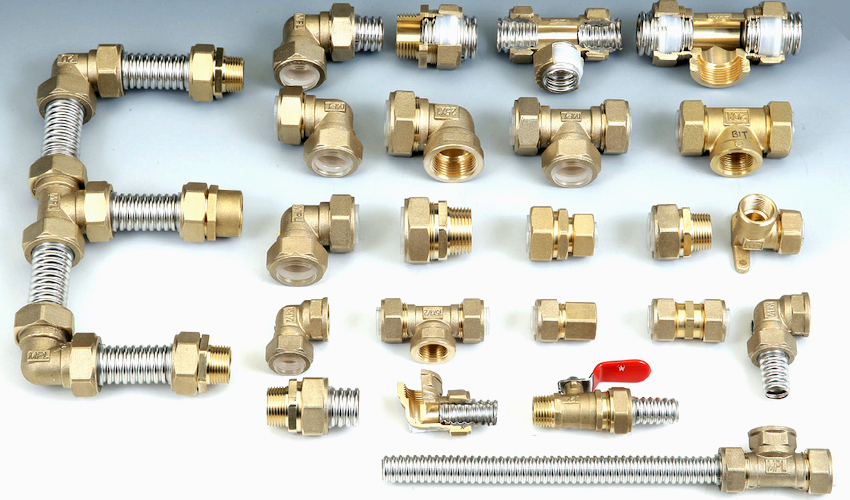 Untuk menghubungkan bahagian individu komunikasi kejuruteraan antara satu sama lain, kelengkapan tembaga paling sering digunakan, yang, bergantung pada tujuannya, boleh mempunyai diameter, bentuk dan konfigurasi bahagian yang berbeza. Produk sedemikian terdiri daripada badan, kacang kesatuan, penyumbat cincin plastik atau keluli dan gasket silikon yang melekatkan paip fleksibel dengan ketat.