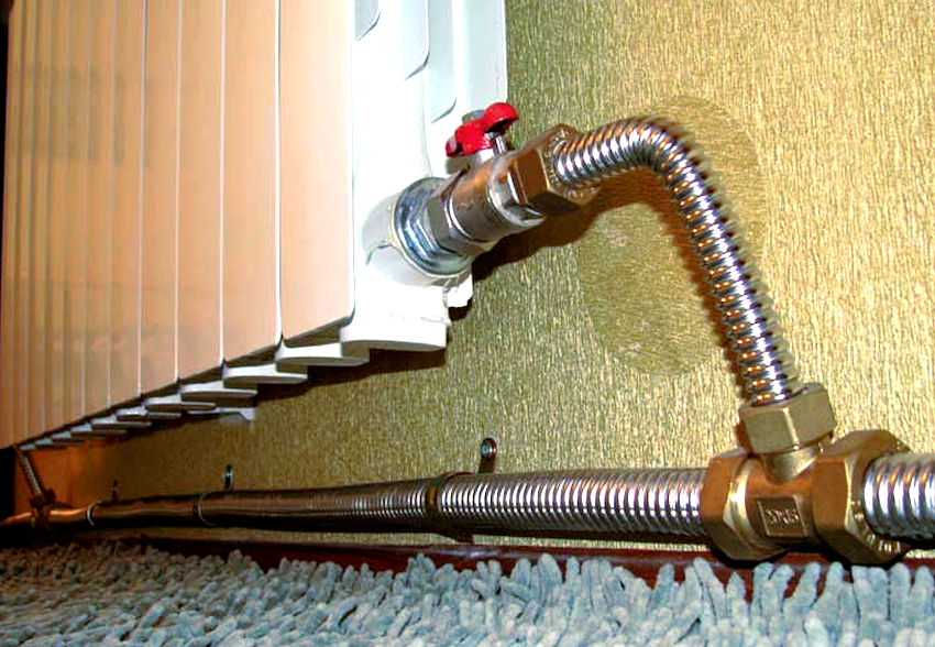 - Penampilan paip beralun tidak begitu menarik, dan oleh itu disarankan untuk menyembunyikannya di belakang hiasan di dinding, dan radiator harus ditutup dengan panel hiasan.