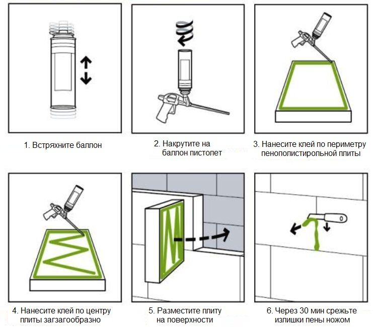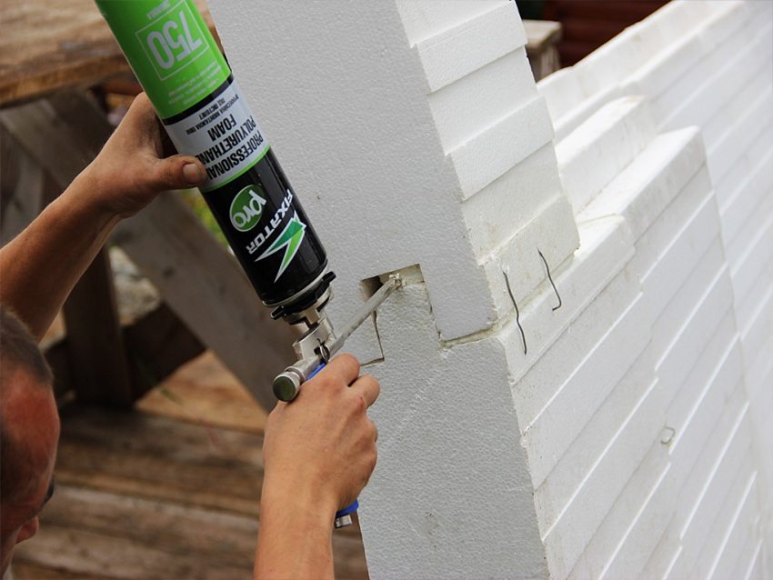 Nasihat berguna! Buih gam mesti digunakan dengan pistol pembinaan khas. Ia boleh digunakan untuk merekatkan jurang yang terhasil di antara plat.