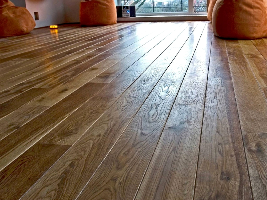 Lantai kayu pepejal mempunyai penampilan yang cantik