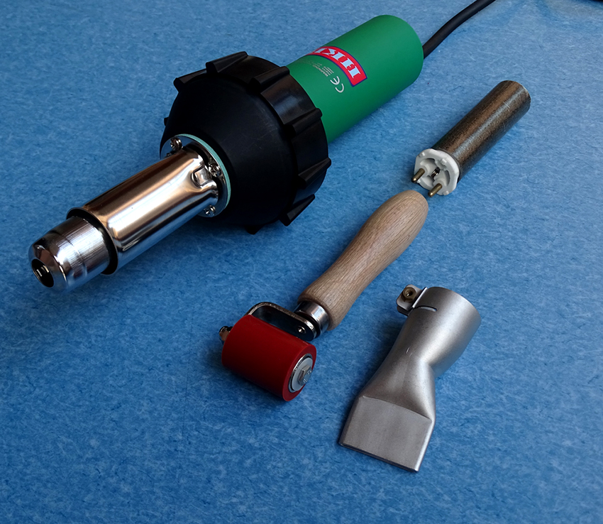 - pistol udara panas kimpalan dengan aksesori yang diperlukan dalam bentuk berus besi dan muncung;