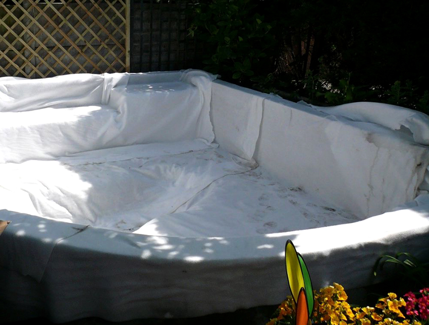 Selama operasi, film kolam, yang dapat dibeli di mana-mana kedai perkakasan, akan terkena banyak beban, akibatnya jangka hayatnya dapat dikurangkan dengan ketara. Untuk melindungi pelapik dari kerosakan dan pada masa yang sama untuk membuat lapisan kedap di seluruh permukaan kolam, substrat geotekstil dipasang. Bahan ini akan membantu mengurangkan kehilangan haba melalui dasar dan dinding kolam, yang akan membantu air di dalam tangki sejuk lebih perlahan.