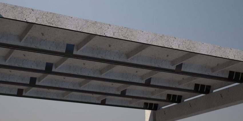 - Penyelesaian konkrit dituangkan ke dalam formwork logam yang disiapkan dengan elemen tetulang dan mesh logam yang terletak di dalamnya.
