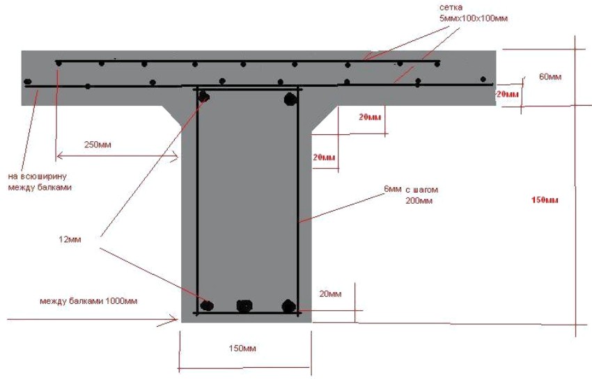 Untuk rentang ukuran yang signifikan, lantai dengan jarak tiga meter digunakan. Rasuk konkrit bertetulang monolitik diletakkan di dinding, yang kemudian disambungkan ke papak konkrit bertetulang utama dan juga diperkuat. Biasanya balok diletakkan pada jarak 1.3-5 m antara satu sama lain. Untuk mencapai ketegaran yang lebih besar, mereka juga dipasang pada tali pinggang konkrit bertetulang menggunakan sauh. Jenis balok tumpang tindih digunakan apabila sangat mustahak untuk mendapatkan siling yang sekata, yang sangat penting bagi bangunan kediaman. Harga balok bertetulang sehingga 6 m bermula dari 1213 rubel. sehelai.