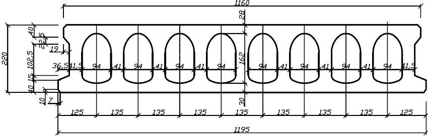 - Berongga. Mereka mempunyai lebar dari 1 hingga 3,6 m, panjang dari 1,7 hingga 9 m. Ketebalan, bergantung pada model, bervariasi dari 16 hingga 30 cm. Mereka dibezakan dengan kehadiran lubang melalui lubang.