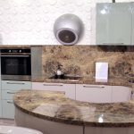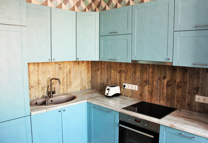 Panel dinding papan serpai untuk dapur: backsplash dan countertop