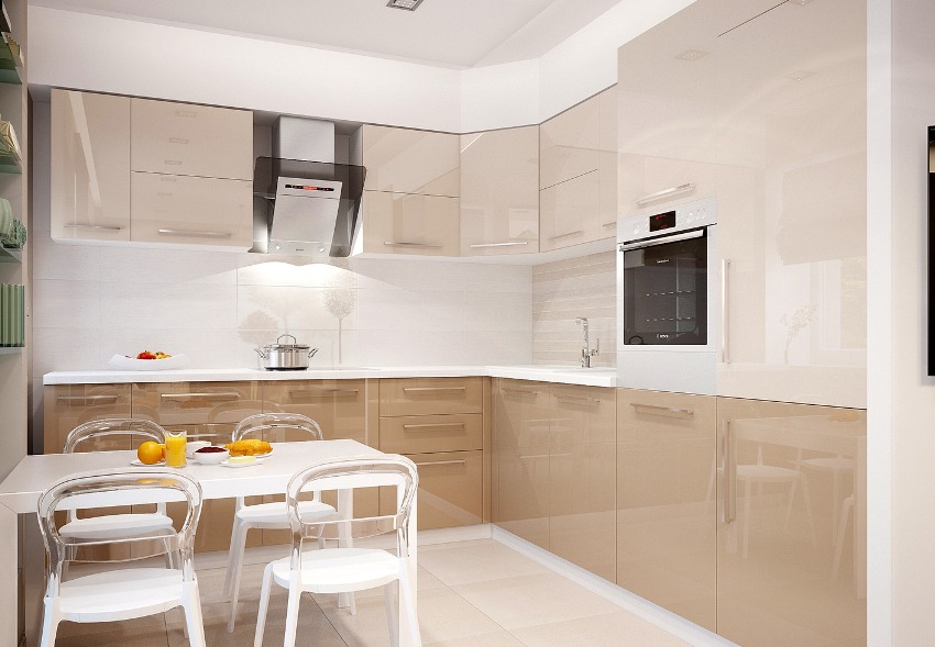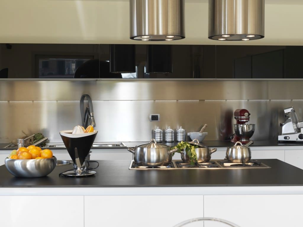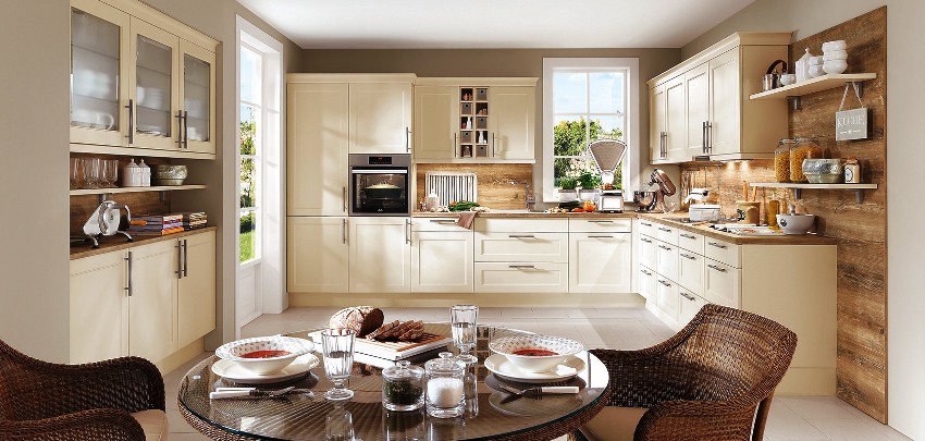 Panel kaca di dapur mempunyai sejumlah faedah khusus: