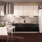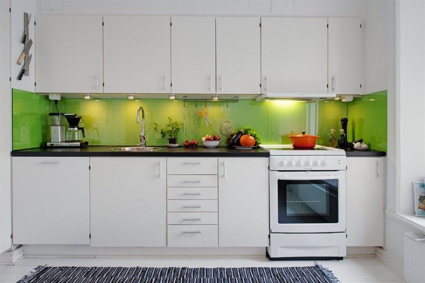 Panel monokromatik warna susu akan sesuai dengan set putih yang digabungkan dengan peralatan gelap. Di dapur putih, cetakan foto yang menggambarkan bandar pada waktu malam akan kelihatan hebat. Panel hitam yang tulen akan menambahkan keselesaan pada bahagian dalam, dan apron yang terang akan menghiburkan anda. Imej bunga akan mewujudkan suasana musim semi di dapur, dan pemandangan laut akan kondusif untuk bersantai.