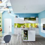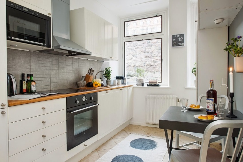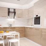 - Kepraktisan panel dinding. Dapur dengan apron seperti itu tidak memerlukan penjagaan khas dan kerap mencuci; pencuci khas juga tidak diperlukan.