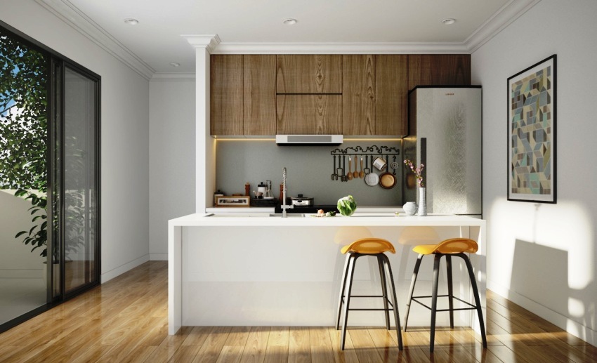 Kelebihan lain dari panel dinding MDF untuk dapur adalah ciri berikut: