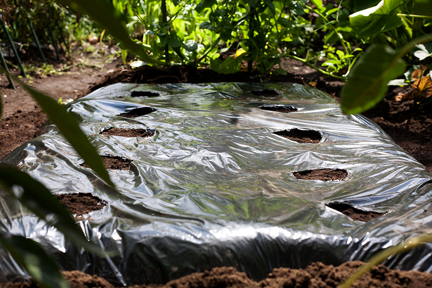Untuk menolong tukang kebun, pengeluar telah mengembangkan dan menjual bahan penutup hitam khas. Ia secara bebas membiarkan curah hujan dan udara di atmosfera, tetapi sepenuhnya menyekat sinar matahari. Tiada rumpai yang dapat bertahan dalam keadaan seperti itu.