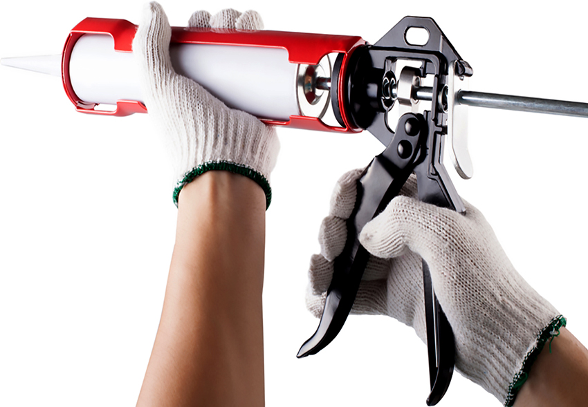 Sekiranya anda tidak menggunakan senapang pembinaan, anda boleh mendapatkannya dengan alat yang ada. Sudah tentu, mereka tidak boleh menjadi pengganti sepenuhnya pistol. Tanpa alat khas, ia tidak akan berfungsi sama rata untuk menerapkan komposisi. Dan kerja pemasangan akan menjadi lebih sukar.