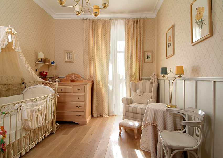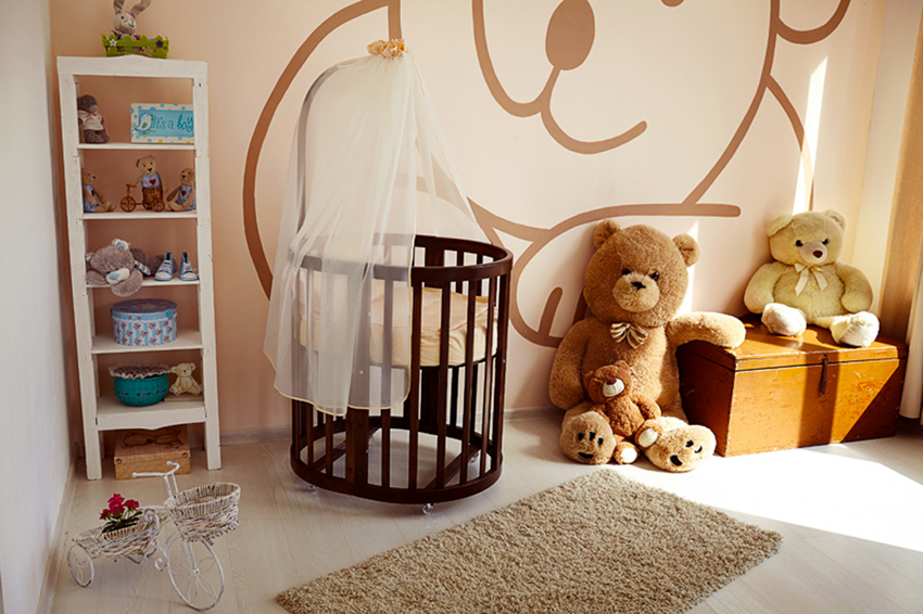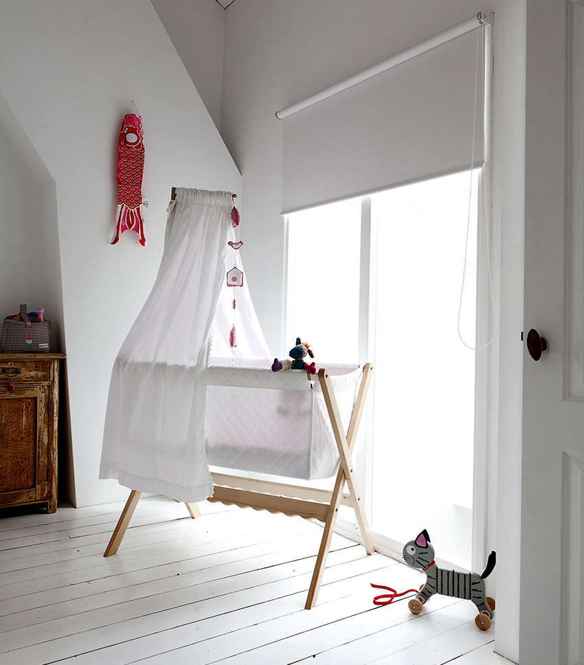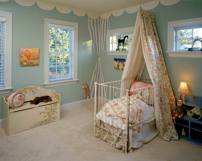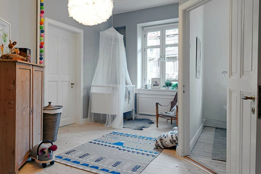 Tirai di atas buaian merosakkan pemandangan, jadi dari beberapa sudut bilik bayi tidak akan kelihatan