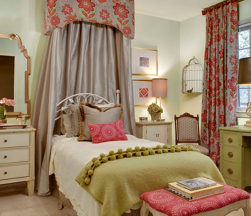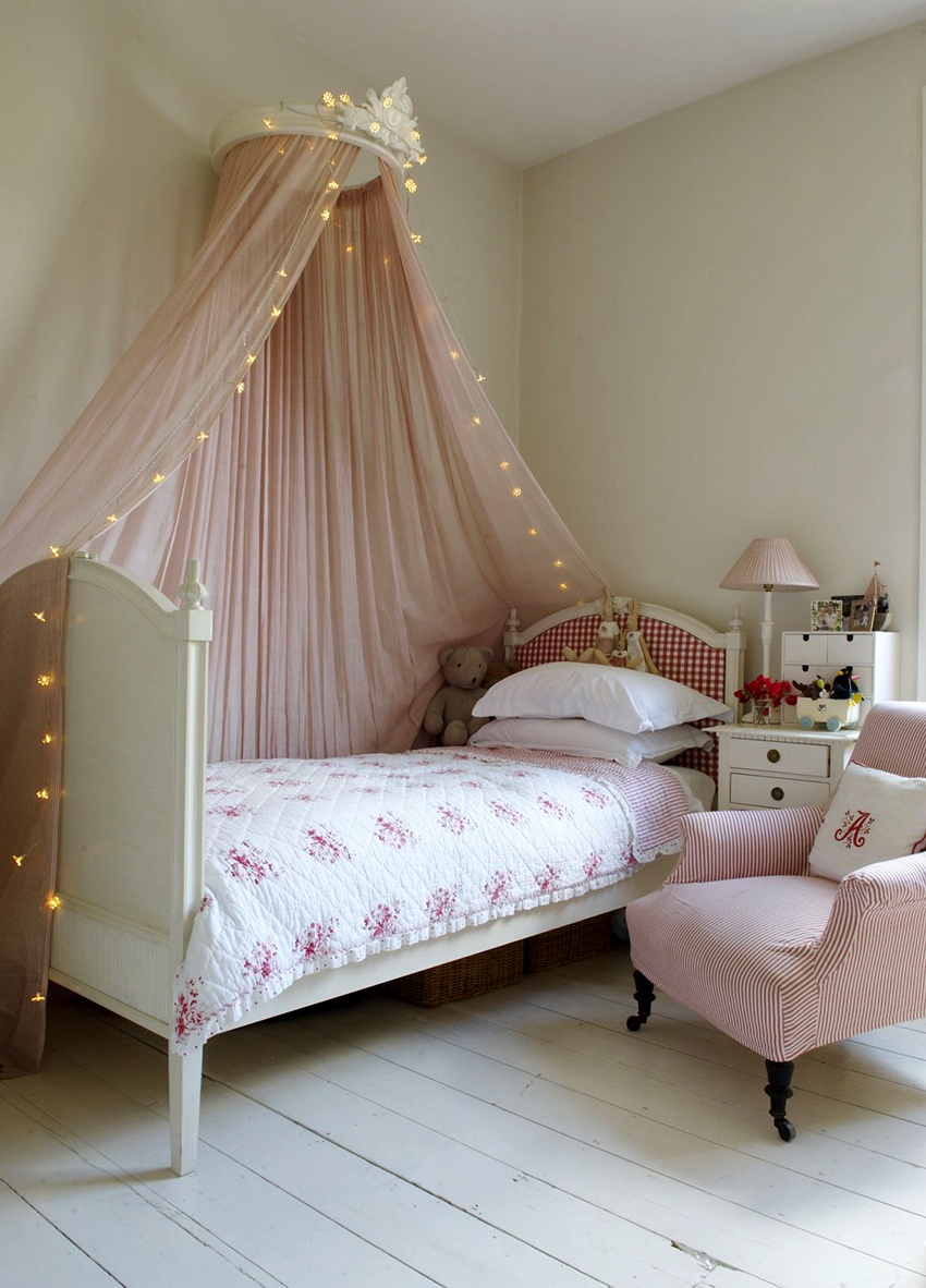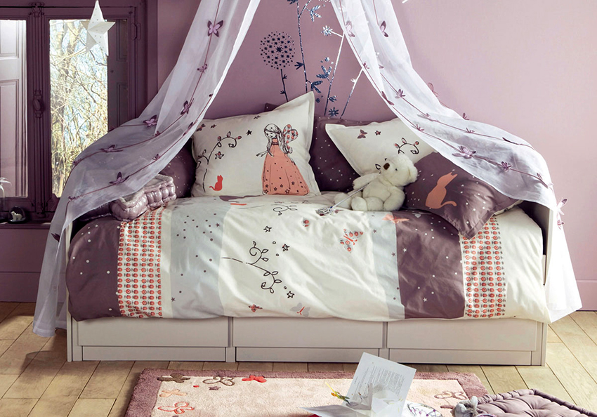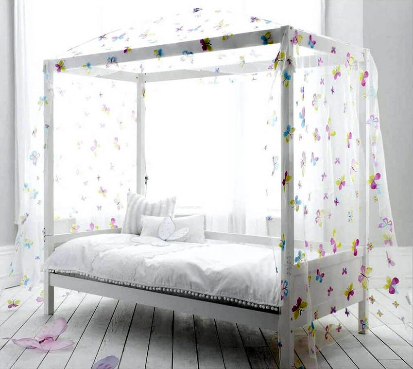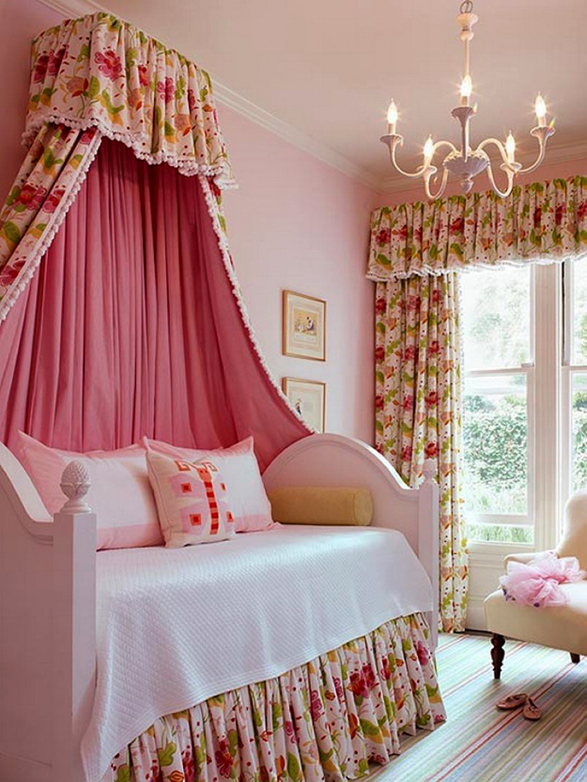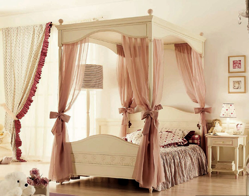 Selalunya, kanopi di bilik tidur gadis itu mempunyai warna terang dan tekstur ringan.