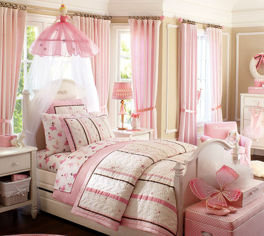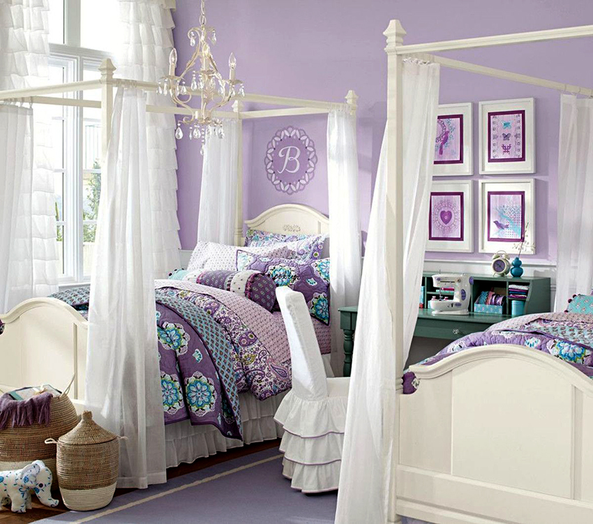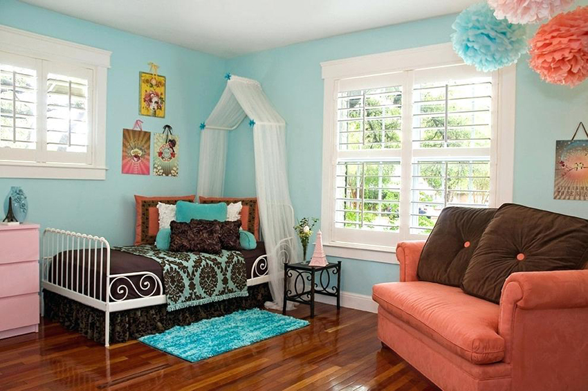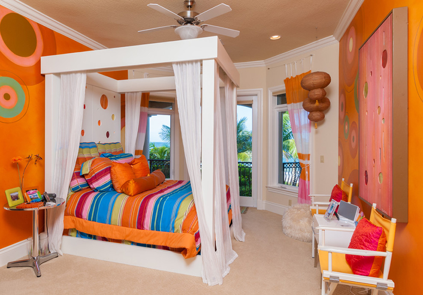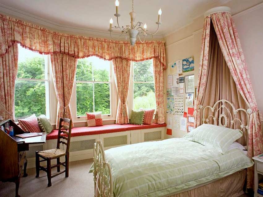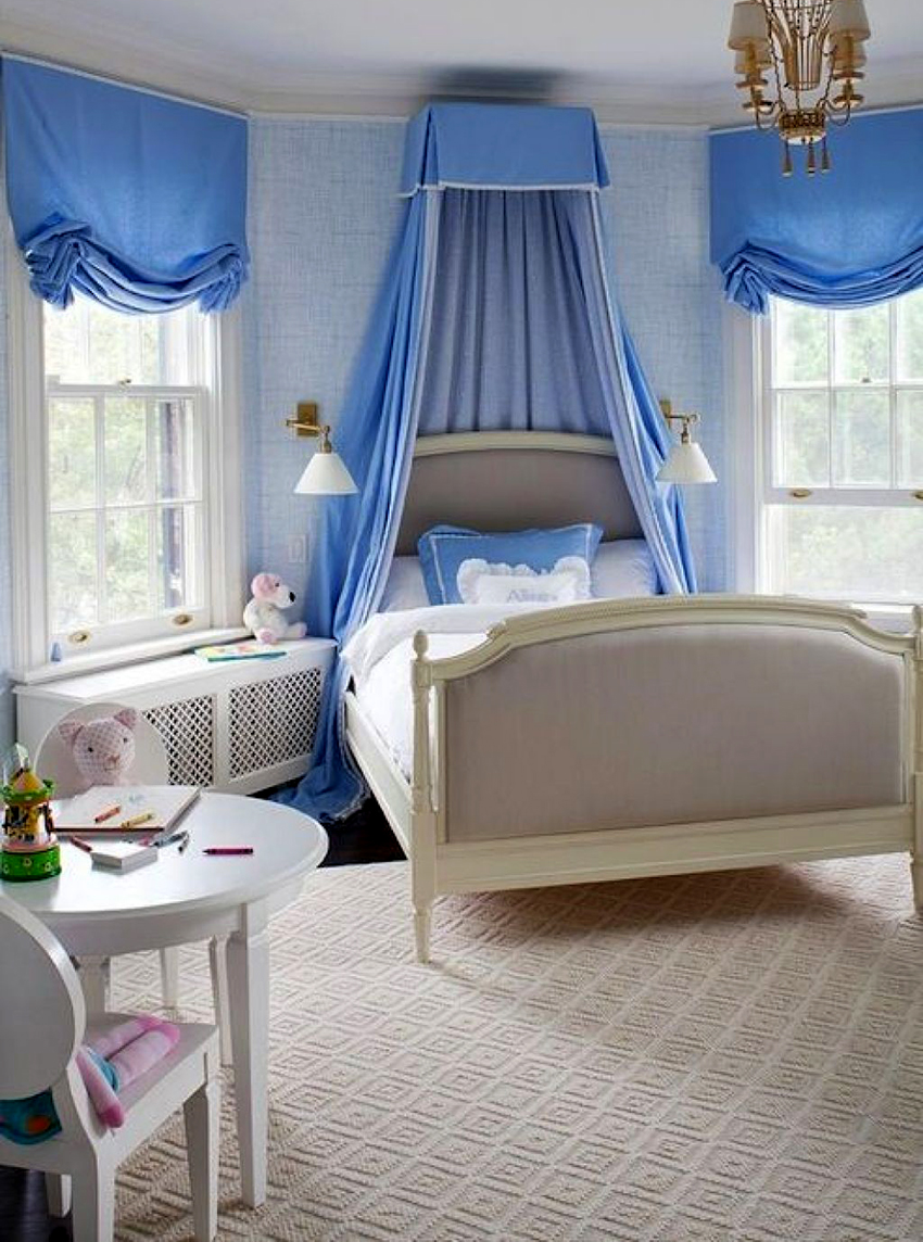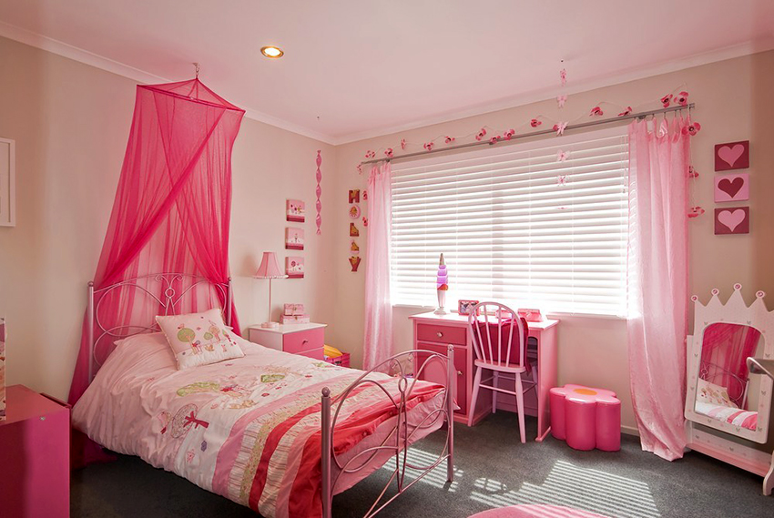 Selalunya, kanopi di bilik tidur gadis itu mempunyai warna terang dan tekstur ringan.