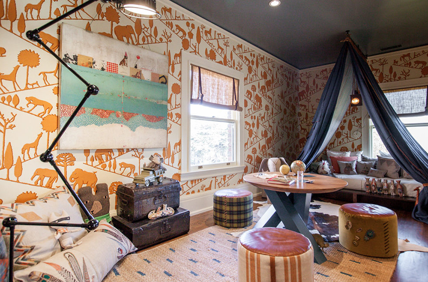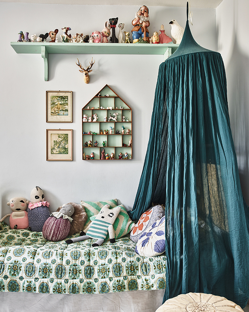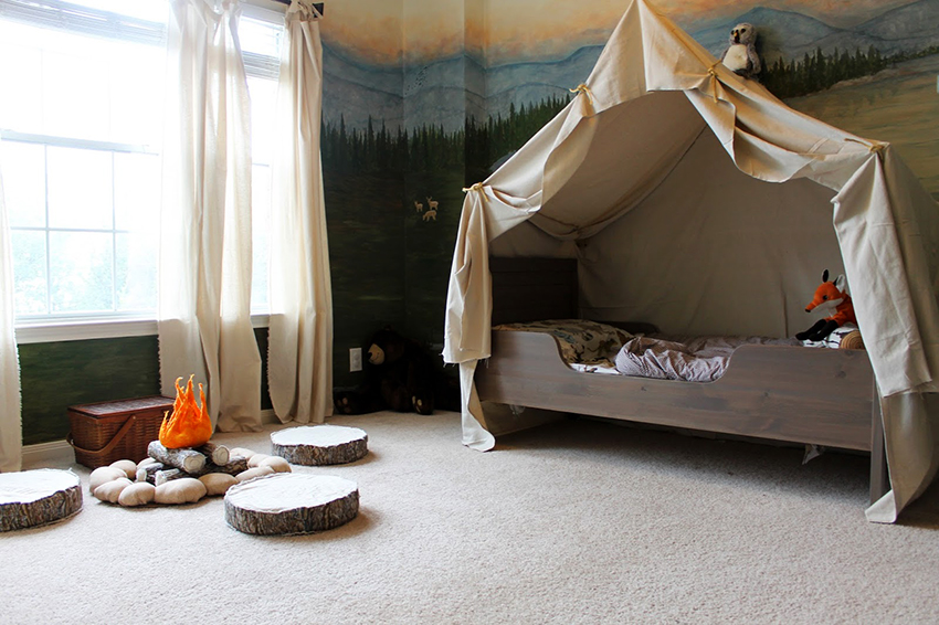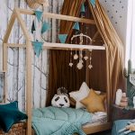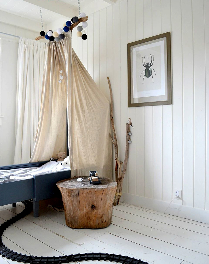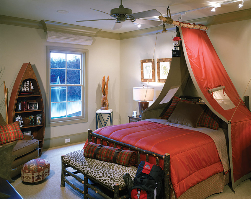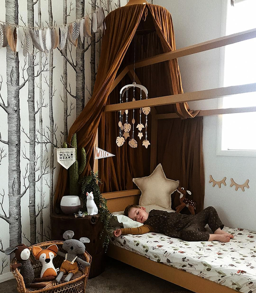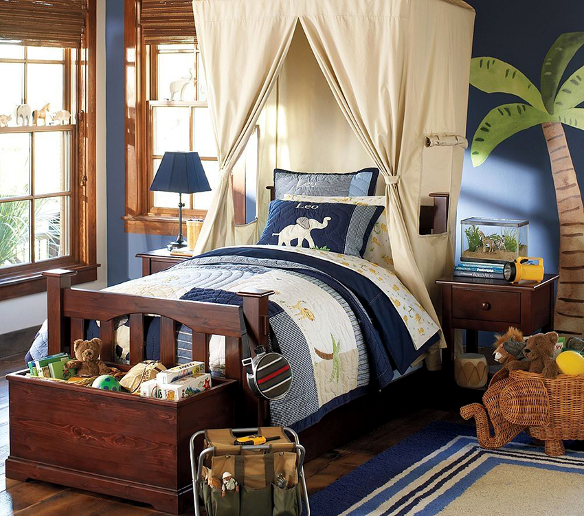 Warna coklat, biru dan hijau sesuai untuk kanopi di bilik budak lelaki.