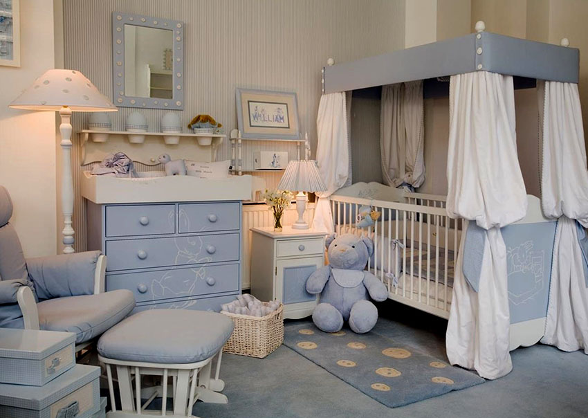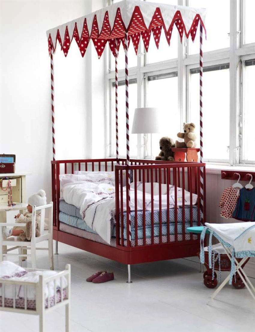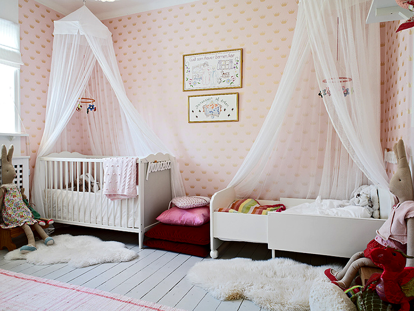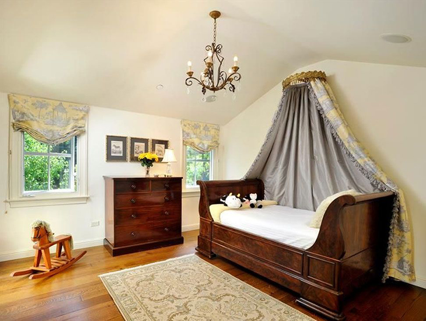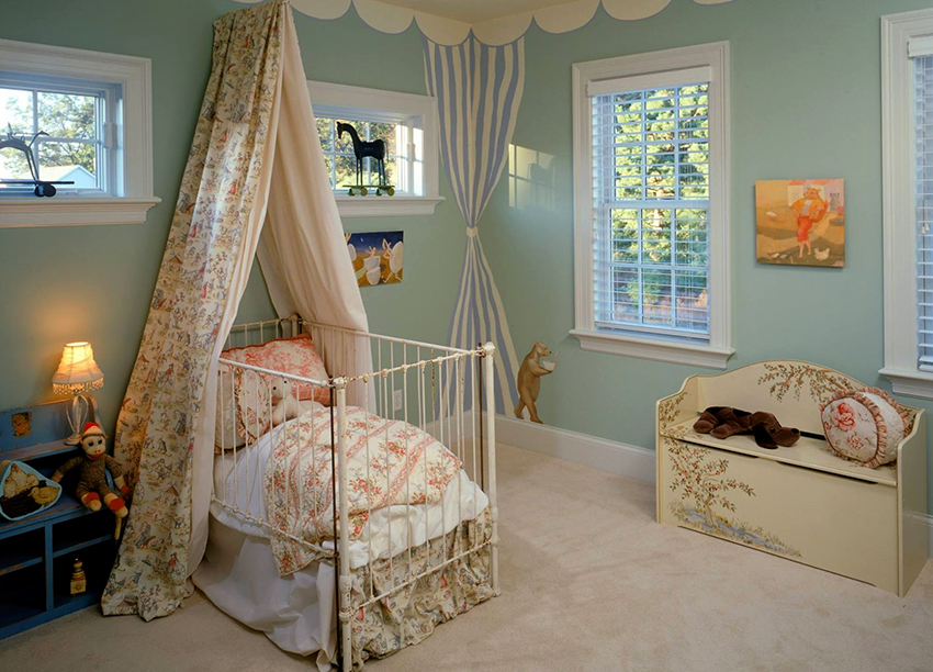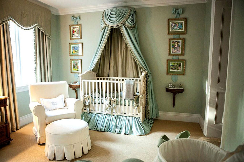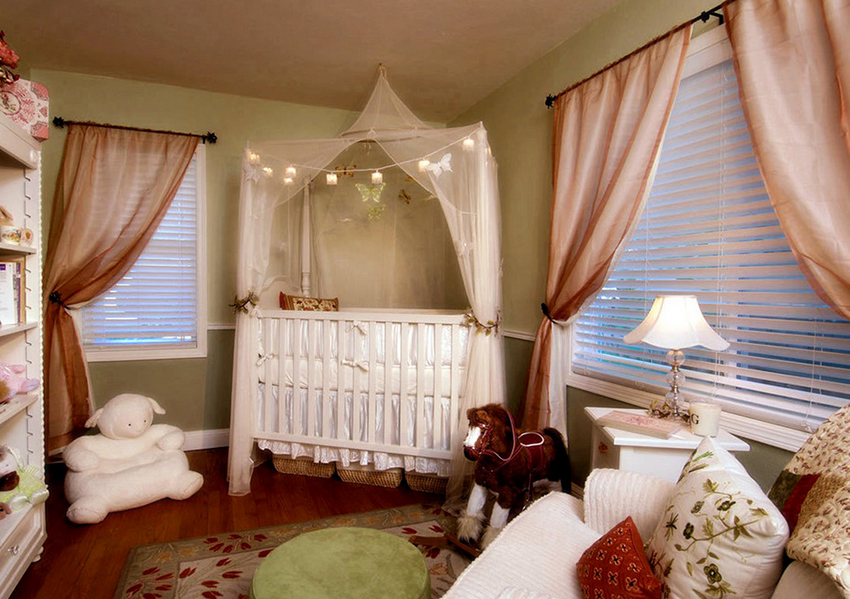Sekiranya terdapat cukup ruang di dalam rumah, bilik berasingan boleh diperuntukkan untuk bilik tidur bayi. Dalam kes ini, tidak masalah bagaimana memasang kanopi di tempat tidur bayi, kerana rangkaian penyelesaian reka bentuk berkembang dengan ketara. Walau bagaimanapun, terdapat batasan.