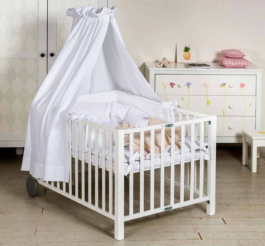 Sebilangan besar kanopi yang baru dilahirkan ketika dilipat sepenuhnya menutupi buaian, memberikan perlindungan dari arus dan arus udara sejuk yang dihasilkan oleh penghawa dingin yang beroperasi di dalam bilik
