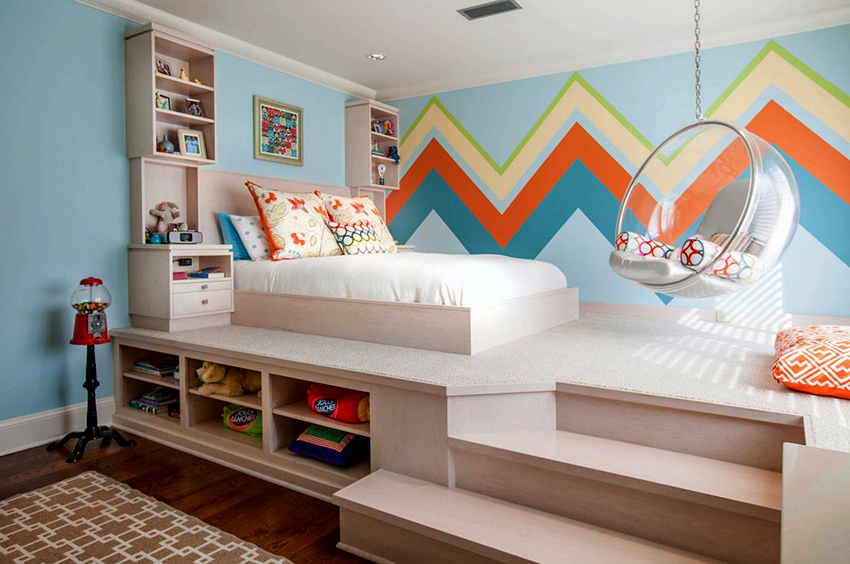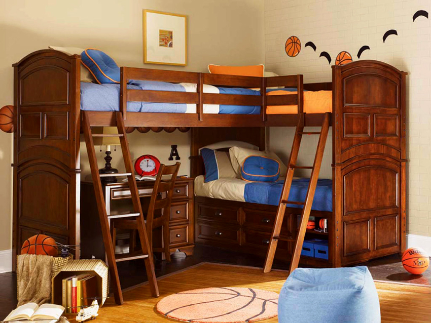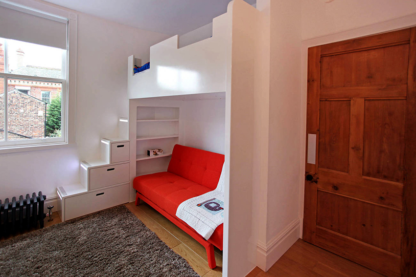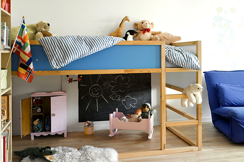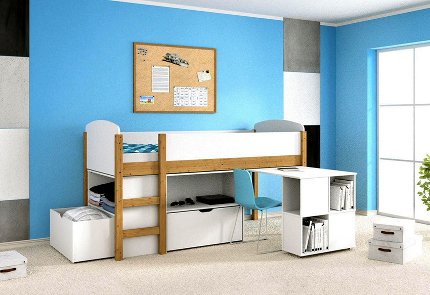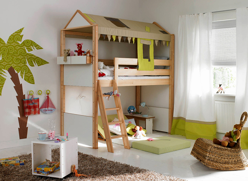 - katil untuk kanak-kanak harus mempunyai fungsi yang tinggi, yang dinyatakan dengan adanya laci, rak dan ceruk.