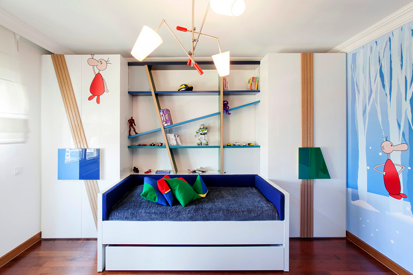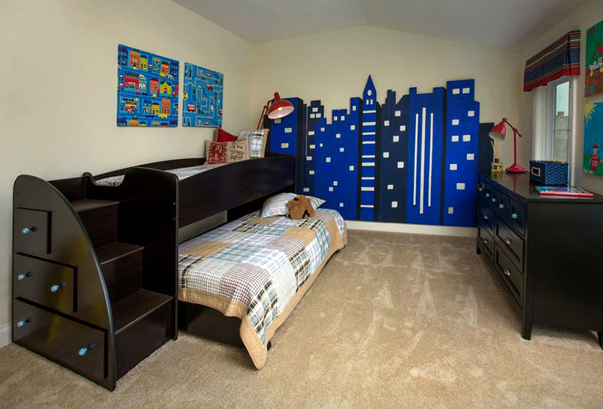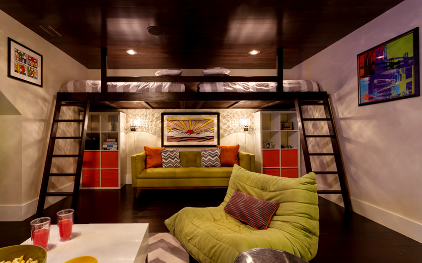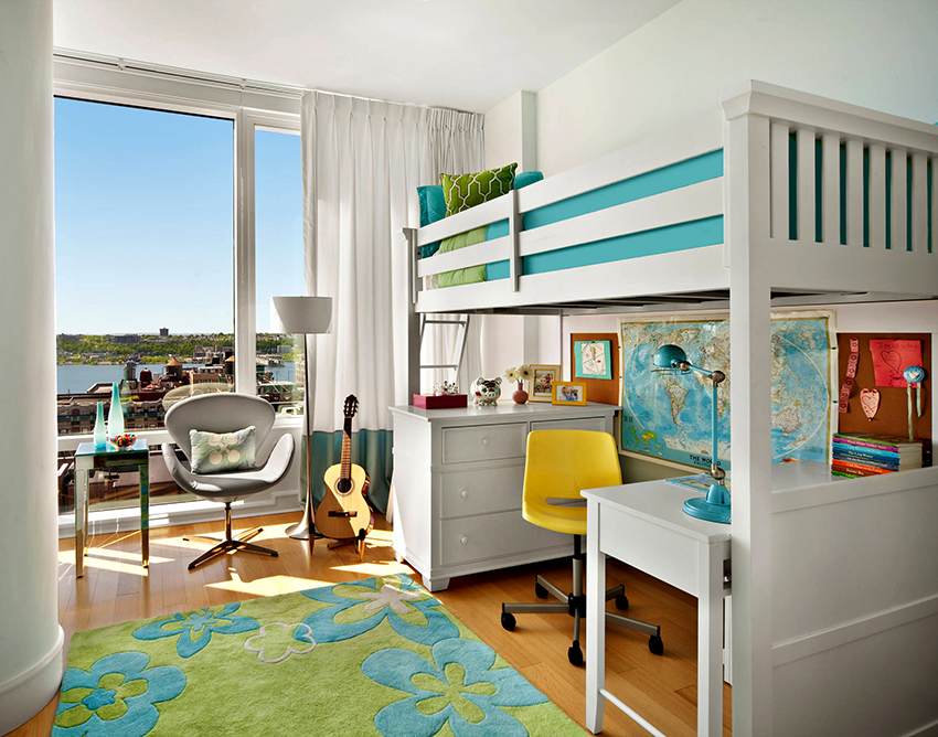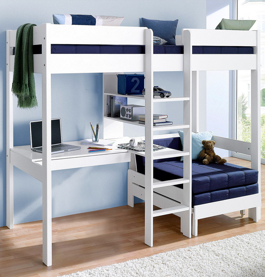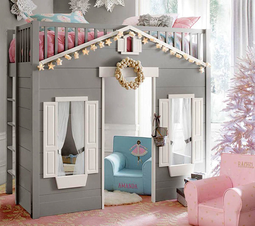 - katil untuk kanak-kanak harus mempunyai fungsi yang tinggi, yang dinyatakan dengan adanya laci, rak dan ceruk.
