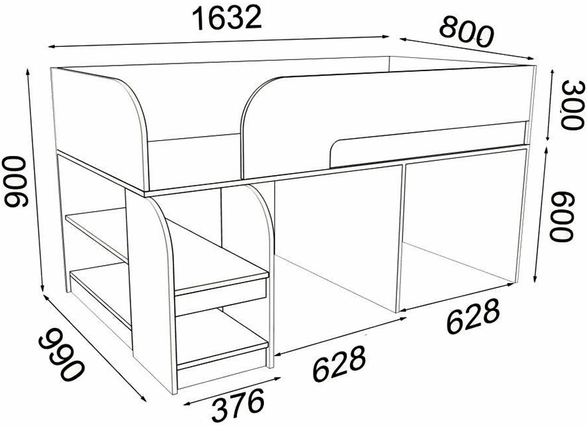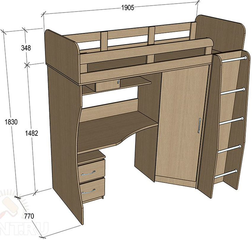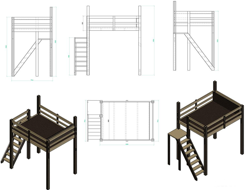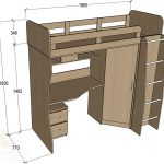 Pembuatan struktur dari 3 tahun dengan sisi: katil loteng kanak-kanak